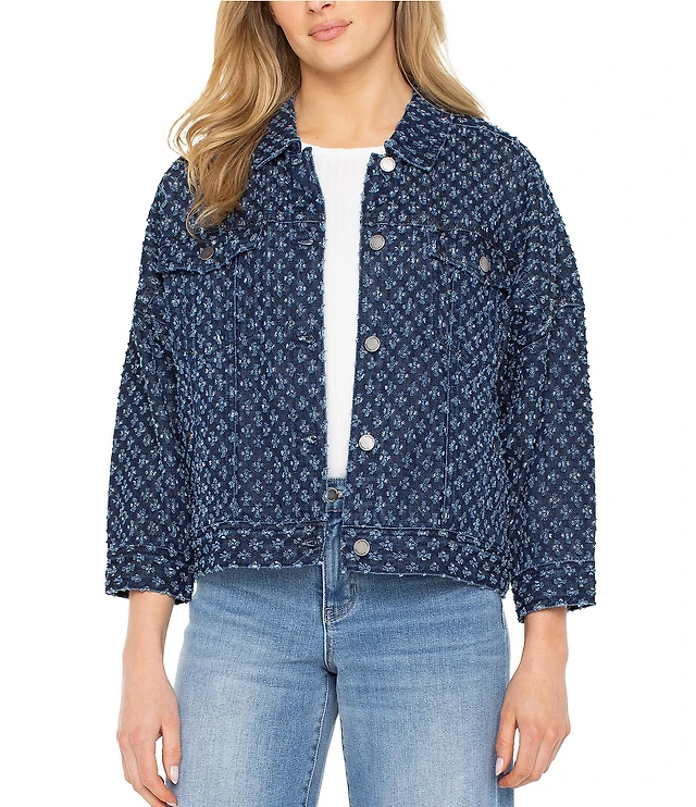 Ruby Rd. Plus Size Paisley Point Collar Long Sleeve Button Front Denim Jacket