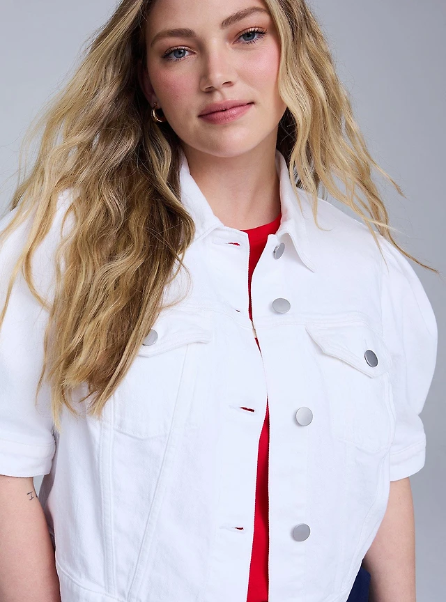 Gianni Bini Ellie Suede Collar Cropped Jean Jacket