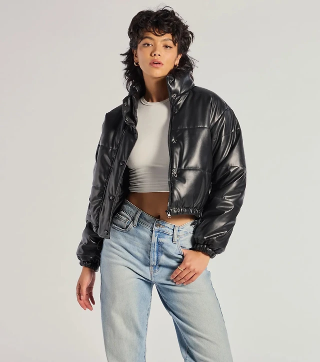 Downtown Girl Faux Leather Sherpa Crop Jacket