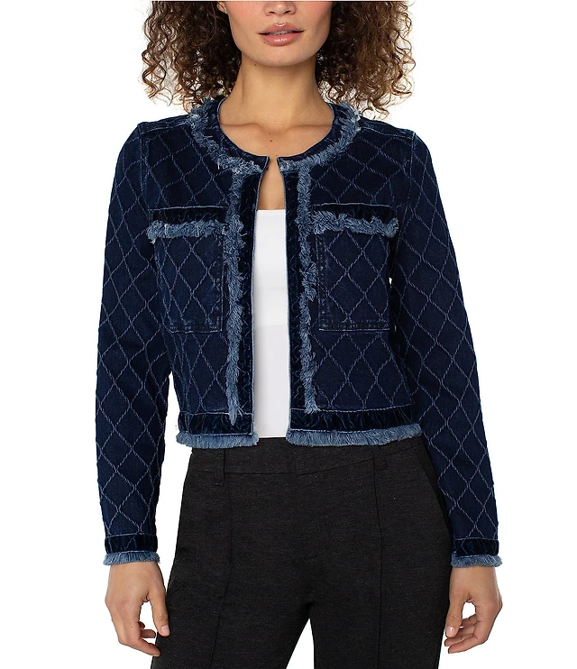 Liverpool Los Angeles Quilted Diamond Jacquard Collarless Long Sleeve Jacket