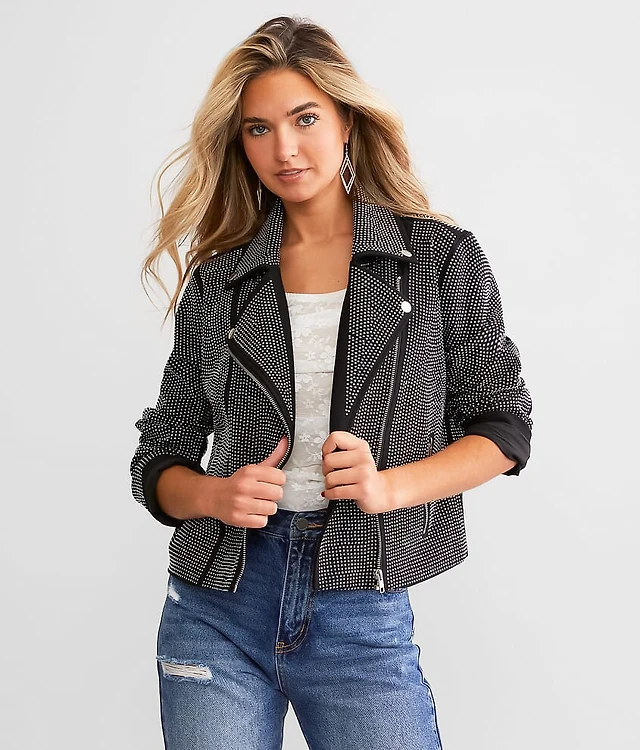 Cozy Sleek Faux Shearling Trim Moto Jacket