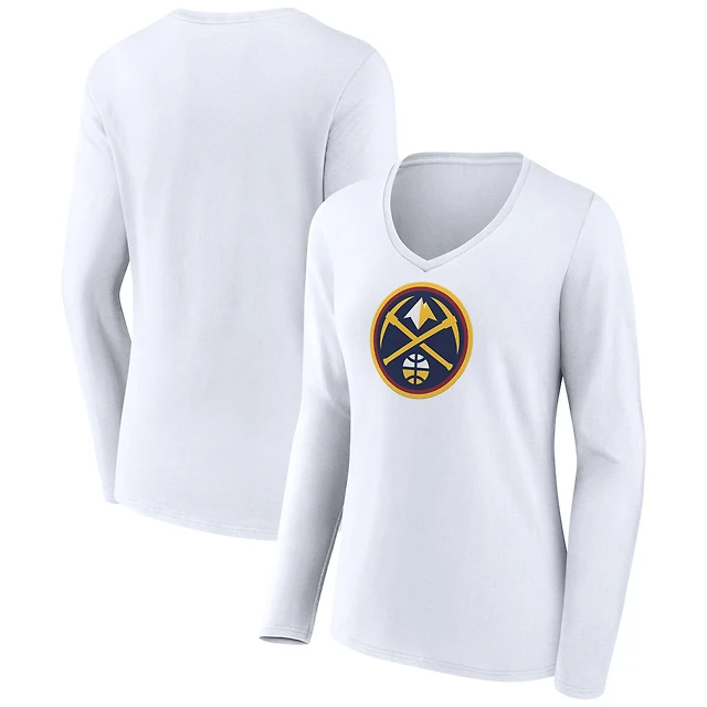 Women's White Denver Nuggets Alternate Logo V-Neck Long Sleeve T-Shirt