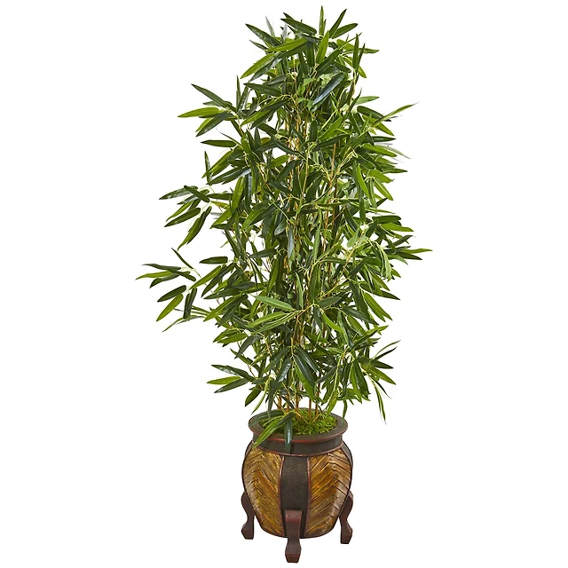 4.5ft. Golden Cane Palm Tree in Tall White Planter