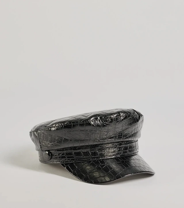 Edgy Sleek Croc-Embossed Cabbie Hat