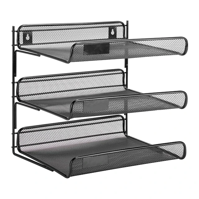 Mind Reader Network Collection Black Metal Mesh 3-Tier Paper Tray