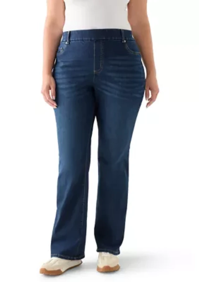 Ruby Rd. Plus Size Stretch Cotton-Blend Straight Slim Leg Metallic Denim Pull-On Jeans