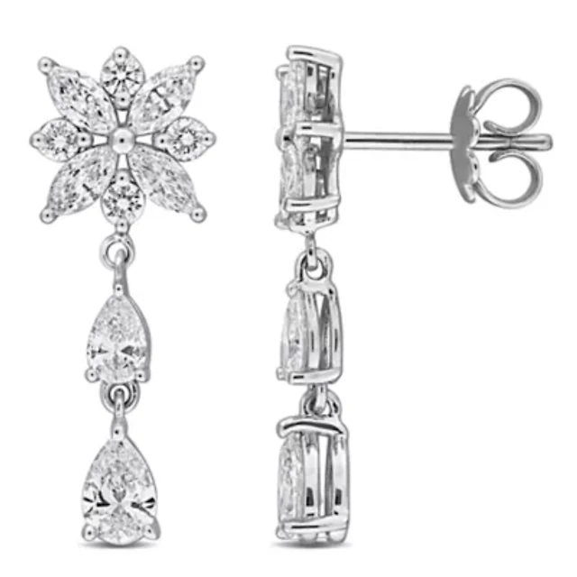Diamond-Cut Marquise Drop Earrings in Sterling Silver