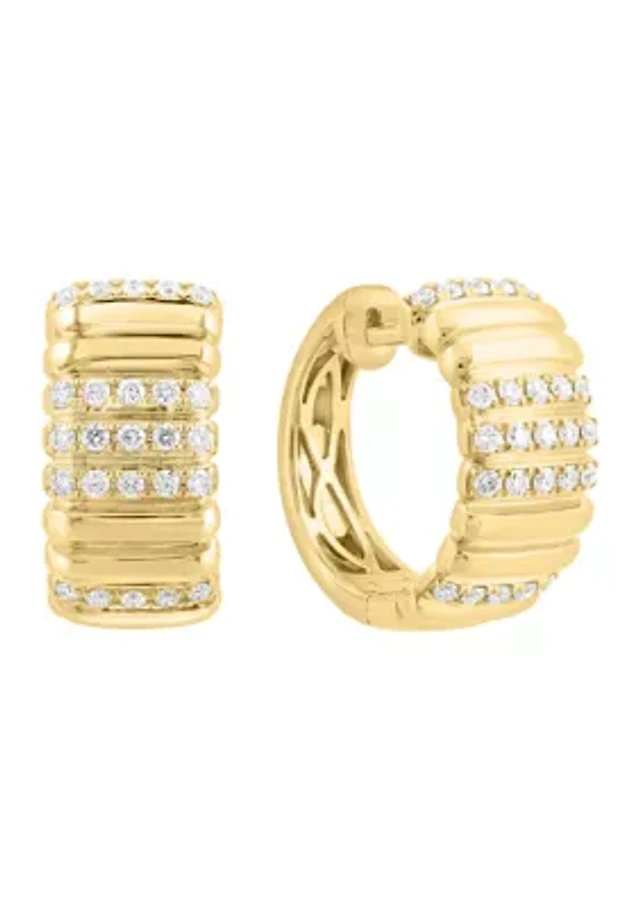 Diamond Accent Pavé Curved Frame Earrings in Sterling Silver