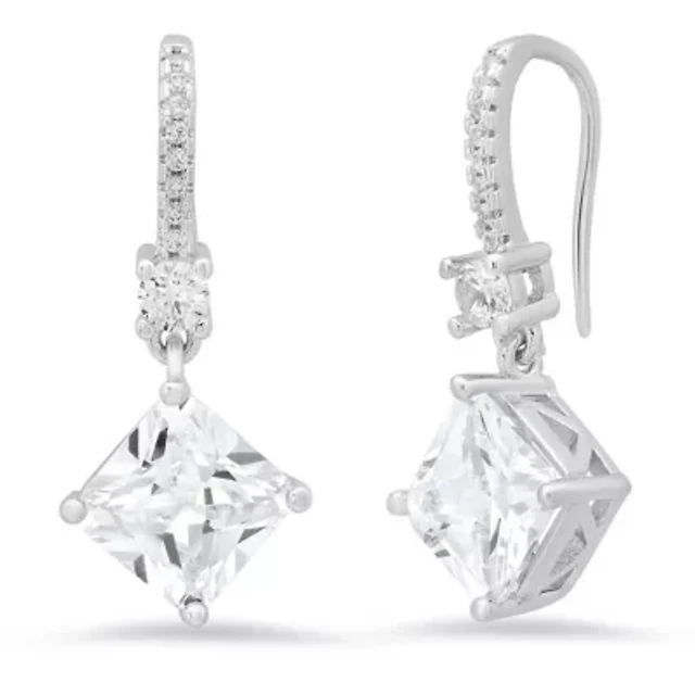 Womens Sterling Silver Diamond Drop Earrings