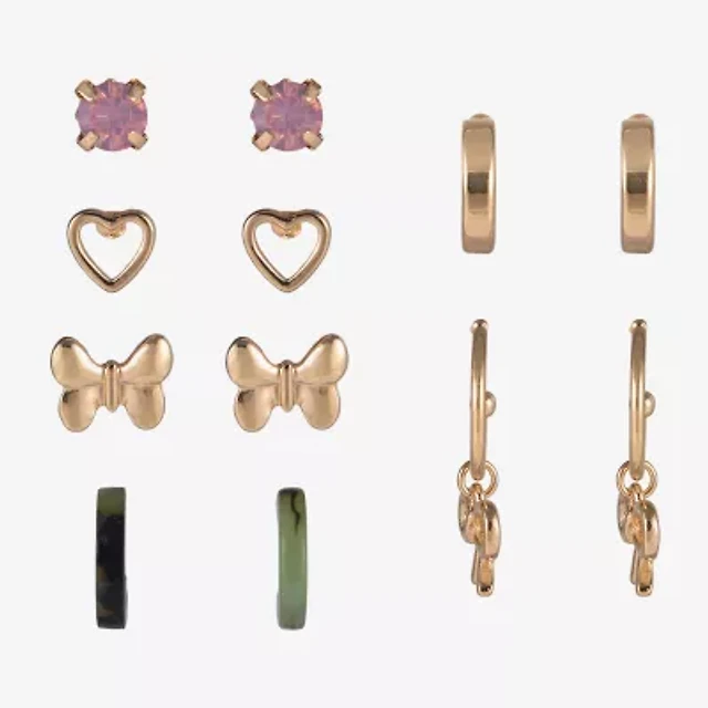 Arizona Gold Tone Womens Bow Butterfly Heart 6 Pair Earring Set