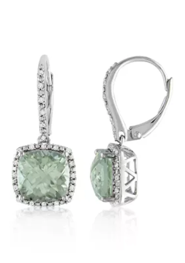 6.0mm Cushion-Cut Aquamarine Earrings in 10K White Gold with Diamond Accents