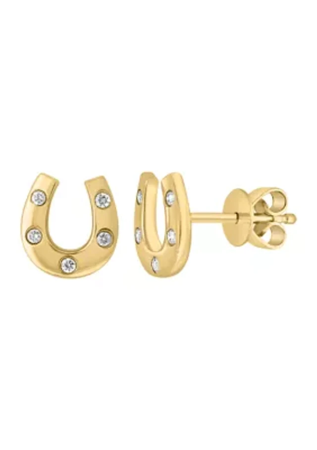 Diamond Accent Natural White Diamond 10K Gold Over Silver 10mm Heart Stud Earrings
