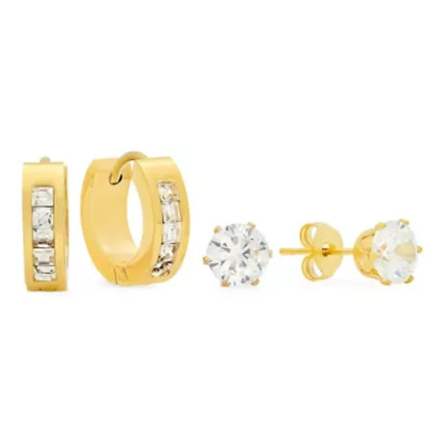 14K Gold Round Baguette Diamond Square Shape Stud Earrings Cttw
