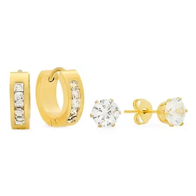Sterling Silver Diamond Simulant & Cubic Zirconia Heart Stud Earring Pack