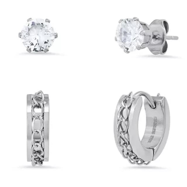 Ladies set of 2pcs black ip stainless steel and multi simulated diamond stud earrings