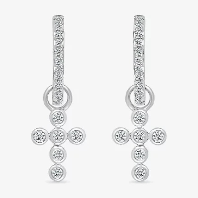 Womens 1/8 CT. T.W. Natural White Diamond Sterling Silver 15.6mm Hoop Earrings