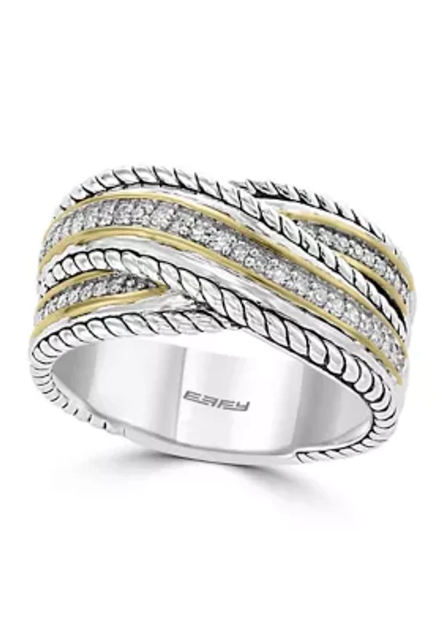 Diamond Ring in Sterling Silver and 18K Yellow Gold