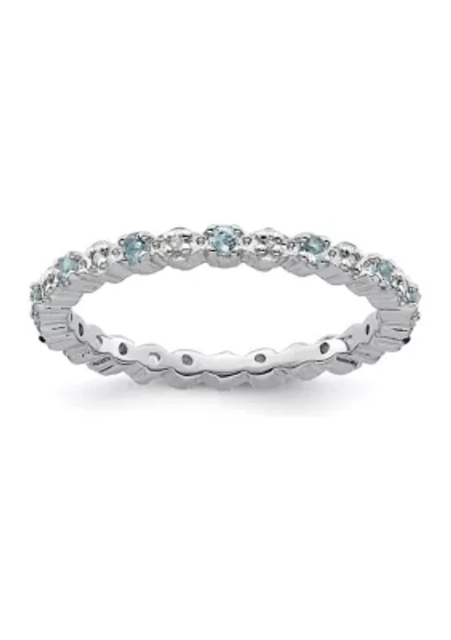 4mm Swiss Blue Topaz and Diamond Accent Sideways Infinity Heart Ring in Sterling Silver - Size 7