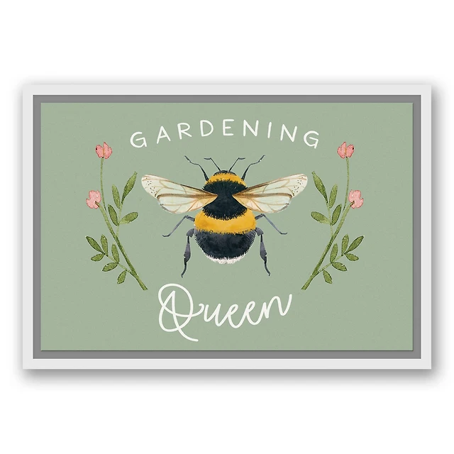 Garden Queen Bee White Floating Framed Canvas Wall Art