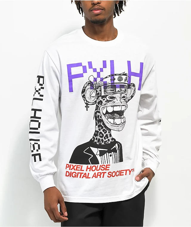 Pixel House Digital Art Society White Long Sleeve T-Shirt