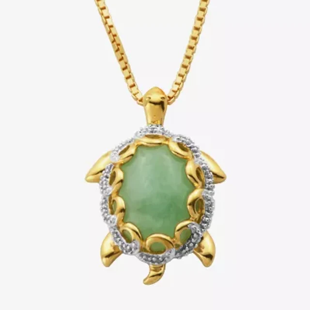 Jade Turtle Pendant Necklace 14K/Sterling Silver