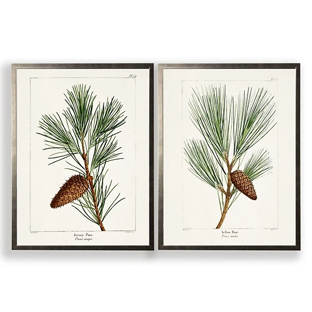Vintage Pine Leaves Framed Art Prints, Set of 2