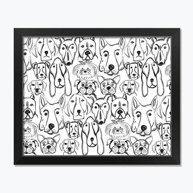 Dog Face Sketch Pattern 1 16" x 20" Black Framed Print Under Plexiglass