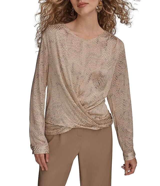 Donna Karan Point Collar Long Sleeve Framed Hem Button Front Shirt