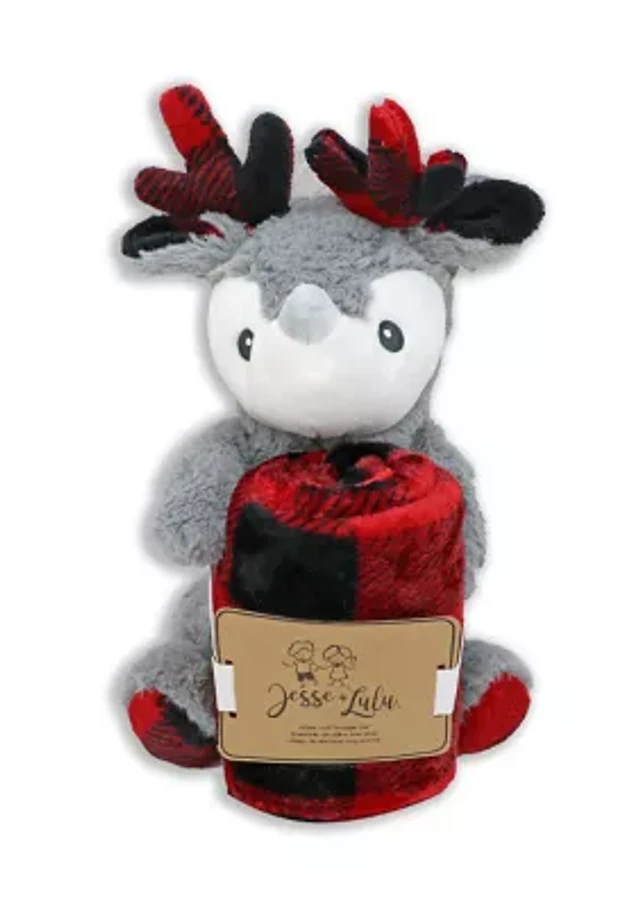 Baby Boys and Girls Check Blanket with Reindeer Plush Toy