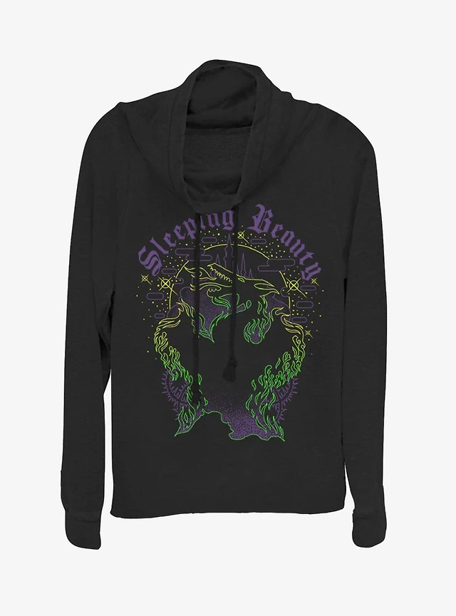 Disney Sleeping Beauty Maleficent Dragon Silhouette Cowlneck Long-Sleeve Womens Top