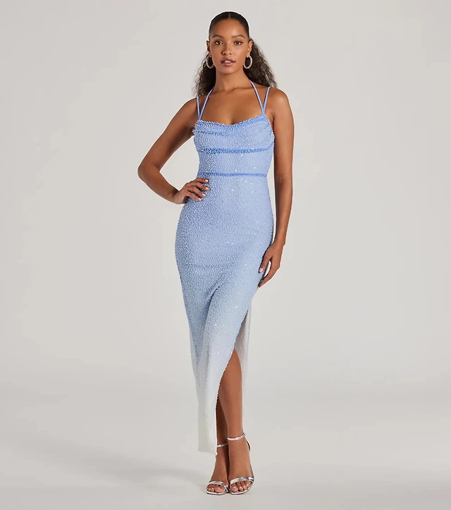 Ariadna Strappy Open Back Slit Glitter Formal Dress