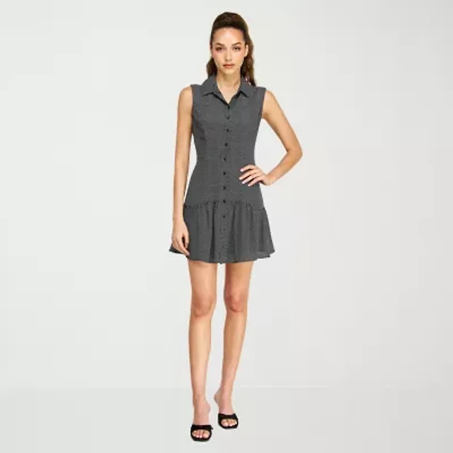 Perceptions Womens Sleeveless Polka Dot Midi Fit + Flare Dress