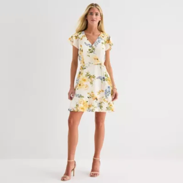 Premier Amour Off The Shoulder Womens Plus 3/4 Sleeve Floral Fit + Flare Dress