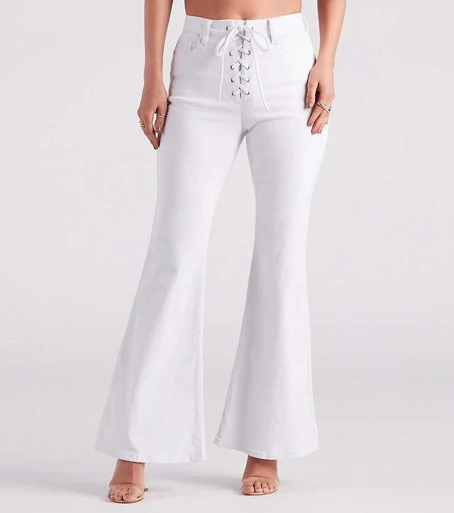 Festi Lace-Up Flare High-Rise Jean
