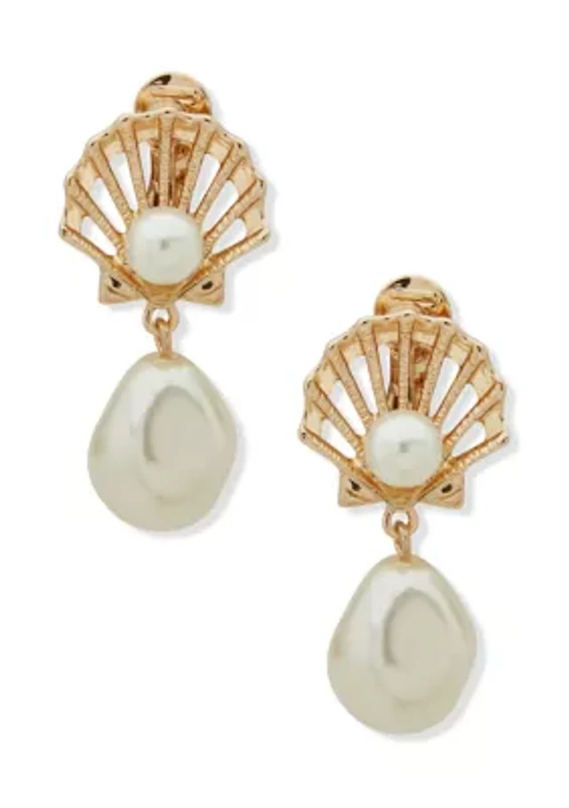 Waterproof Gold Plated Stainless Steel Pearl Shell Drop Huggie Earrings