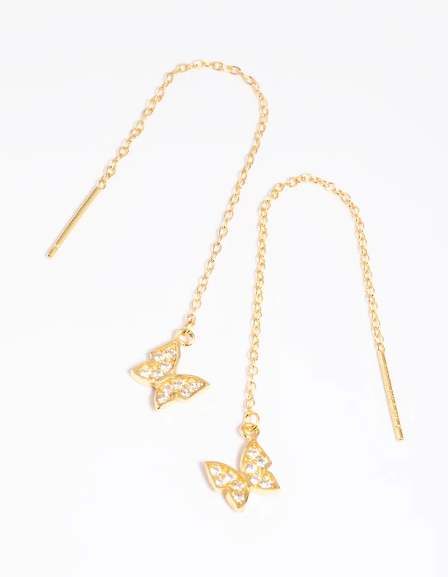 Cubic Zirconia Linear Drop Earrings in 10K Gold