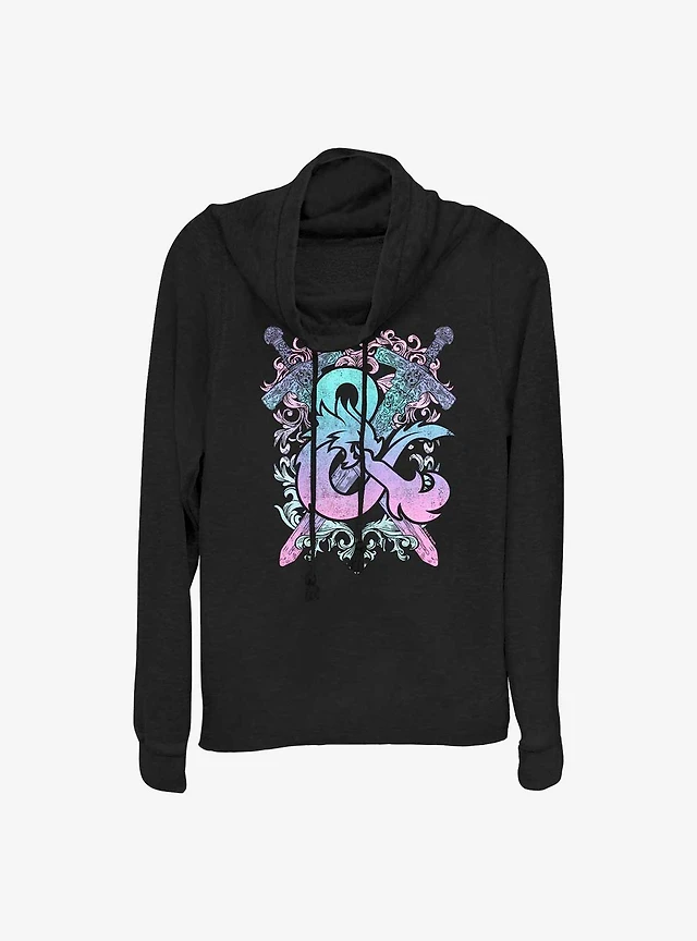Dungeons and Dragons Pastel Logo Cowl Neck Long-Sleeve Top