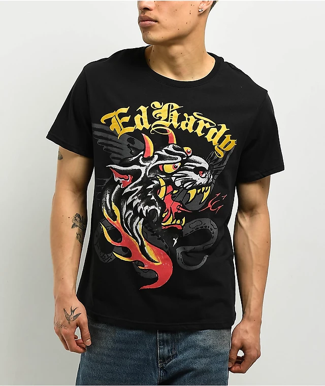 Ed Hardy Orchid Rhinestone Charcoal Cap Sleeve T-Shirt