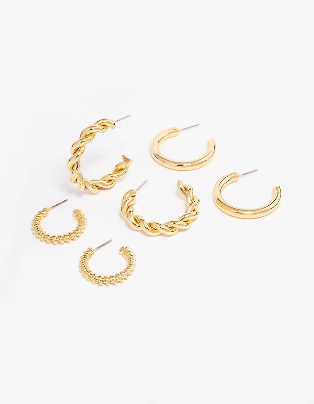 Gold Twisted & Polished Hoop Earring 3-Pack