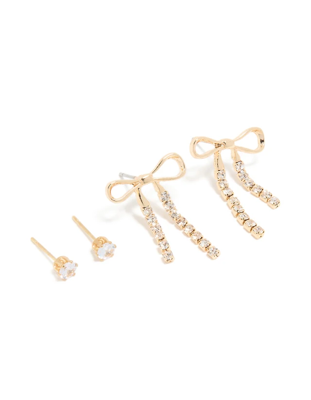 Waterproof Gold Plated Stainless Steel Cubic Zirconia Mix Earrings 3-Pack