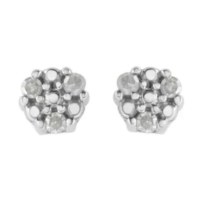 Silver 1/10 Ct Prong RoundTrio Diamond Stud Earrings