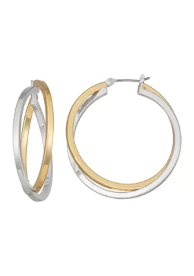 Two Tone 35 Millimeter Crisscross Hoop Earrings