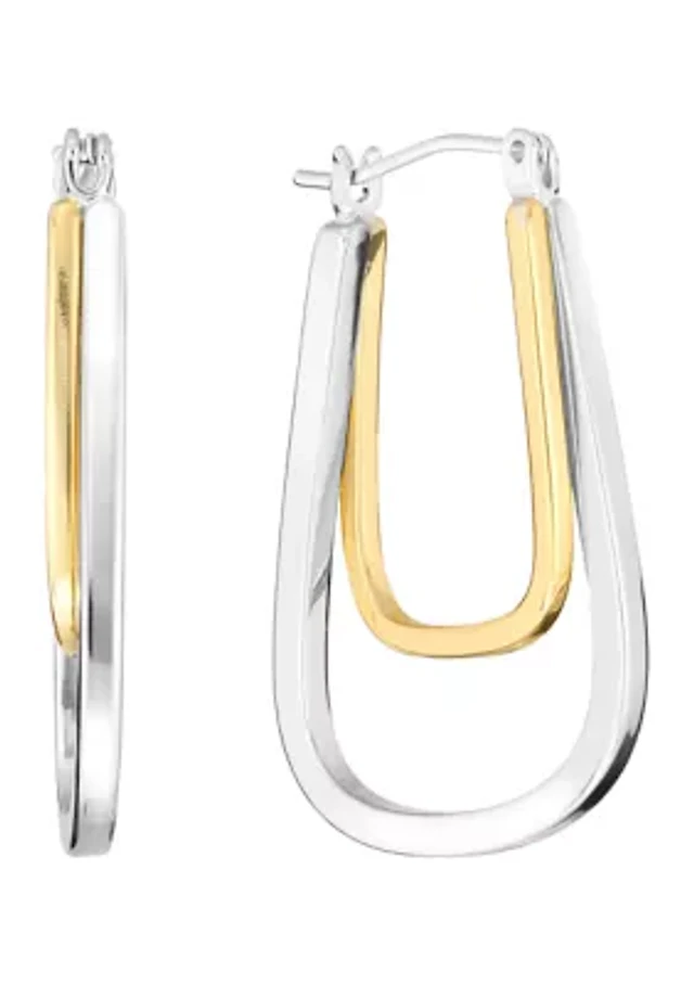 Sterling Silver/10K Yellow Gold Bonded Curved Wide Bar Stud Earrings
