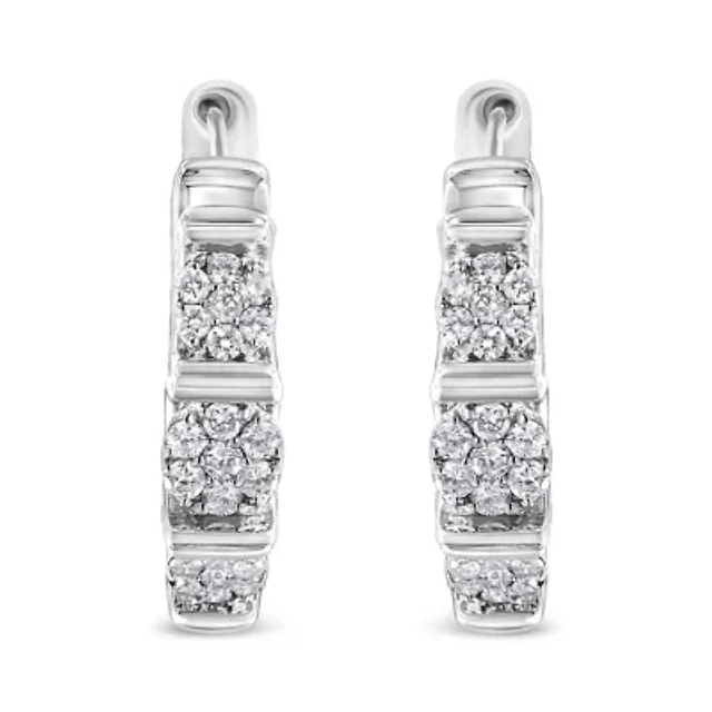 10K Solid Gold CZ Tri-Stone Center Hoops
