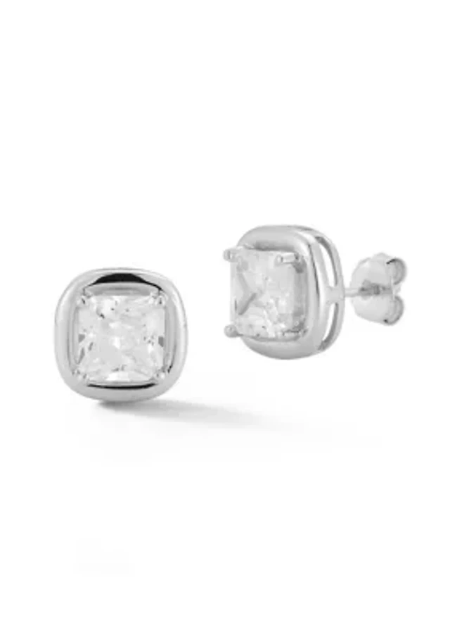 Sterling Silver Puffed Square Studs with Cubic Zirconia