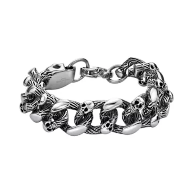 Mens Antique Finish Stainless Steel Skull Head Bracelet