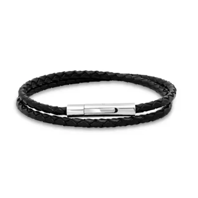 Steeltime Braided Leather Mens Stainless Steel Hypoallergenic Wrap Bracelet
