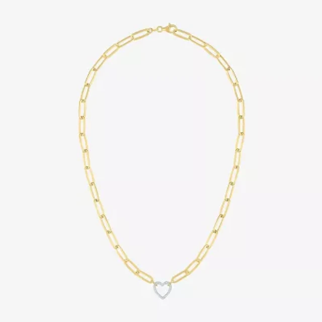 (G-H / I1-I2) Womens 1/10 CT. T.W. Lab Grown White Diamond 14K Gold Over Silver Heart 18 Inch Pendant Necklace