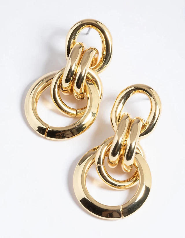 Gold Round Link Acrylic Drop Earrings