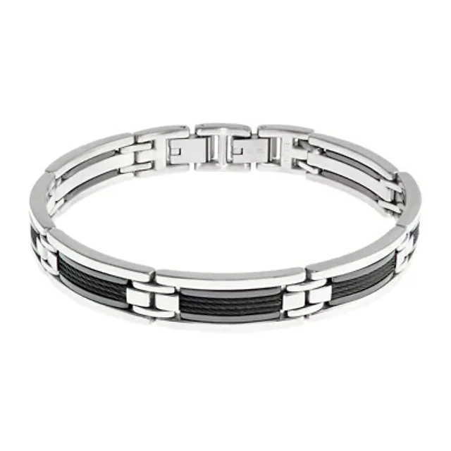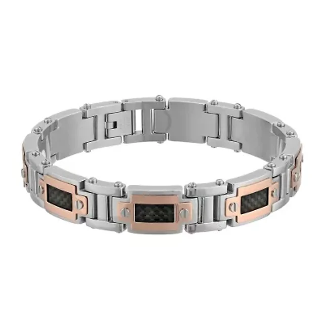 Tungsten Yellow Tone Mens Polished Link Bracelet 11mm Size 8.5 Inches